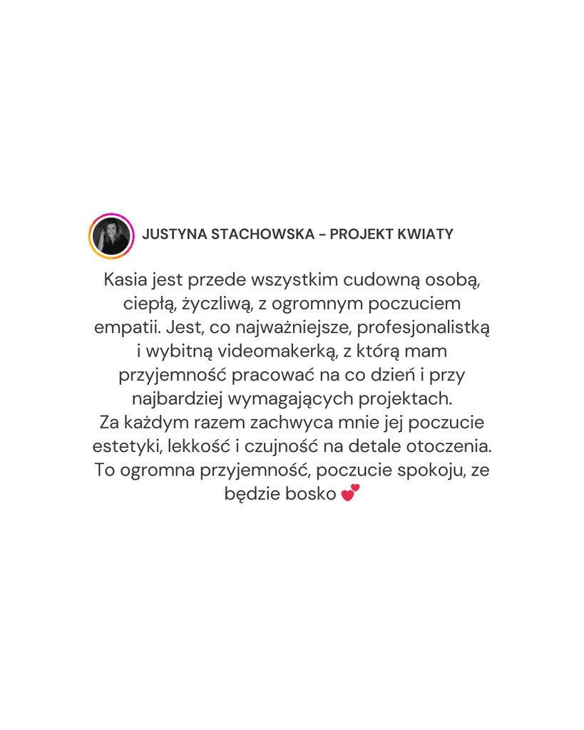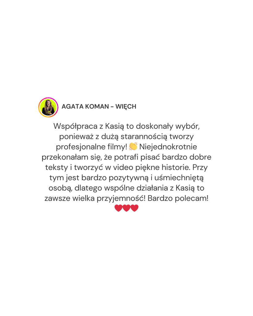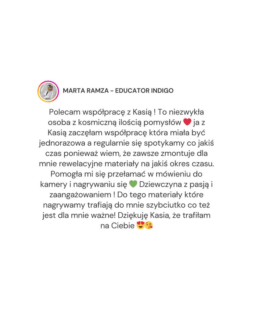 Dzięki połączeniu wiedzy z marketingu i produkcji video pomagam budować obecność online, która przyciąga klientów, ale przede wszystkim jest spójna z Tobą.